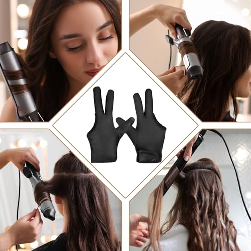• Ptwola 2pcs Heat Resistant Gloves for Hair Styling, Professional Heat Proof Mitts Reusable Three-Finger Barber Glove for Hair Styling Straightener Curling Iron Wand Flat Iron (Black)