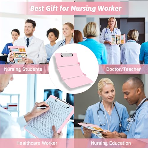 Trustnice Nursing Clipboard Foldable Clipboard Medical: Edition Cheat Sheets Aluminum 3 Layers Foldable Clipboards Nursing Pocket Size Profile Clip Nurse Clipboards Notepad for Nurses Students and Doctors, Baby Pink
