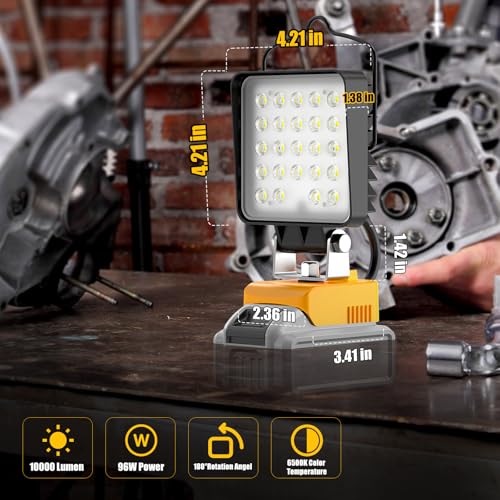 • wokelux 2 Pack Cordless LED Work Light for Dewalt 20V Max Battery, 96W 10000LM Light with USB and Type-C Charging Port, Outdoor Handheld Flood Light, Low Voltage Protection - No Battery