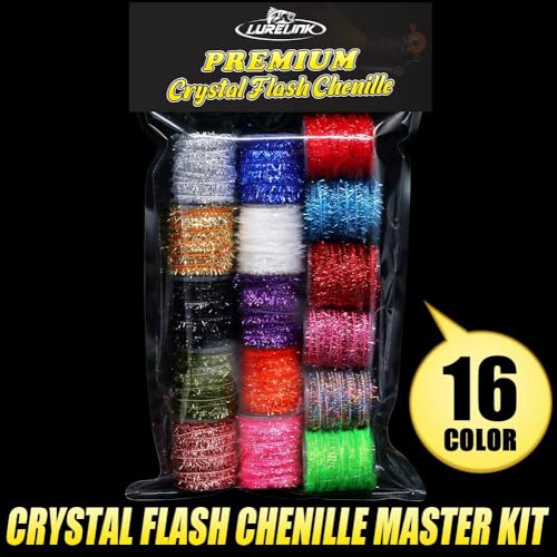 • LURELINK-Crystal-Flash-Chenille-Fly-Tying-Materials-16-Colors-Sparkling-Chenille-for -Crappie -Jig Making Supplies & Fly Patterns (16-Colors)