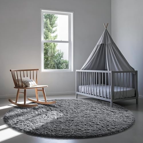 • Ophanie Round Rugs 6Ft Grey Circle Area Rug, Fluffy Fuzzy Bedroom Carpet, Plush Soft Shaggy Indoor Floor Gray Living Room Rugs for Kids Home Decor Aesthetic, Nursery