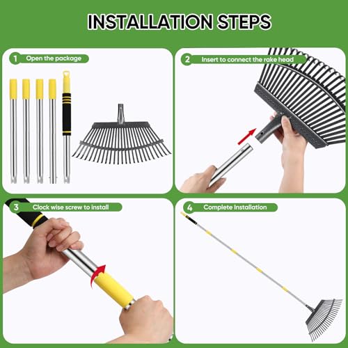• Coopvivi Rake Heavy Duty 6FT Long Garden Rakes , 18.5 Inch Wide Leaf Rake for Lawns, 25 Metal Tines, Adjustable Stainless Steel Handle for Leaves, Yards, Grass, Garbage, Weeds, Debris (Yellow)