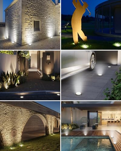• btfarm 10 Pack Solar Ground Lights Outdoor, 8 LED Disc Lights IP65 Waterproof Flat Light, Pathway Light Solar Powered for Garden Lawn Patio Yard Path Landscape, Cool White