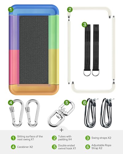 • 60" Tree Swing, 700lbs Capacity Rectangle Platform Swing, Waterproof & Durable, Adjustable Hanging Straps for Outdoor & Indoor Use, Suitable for Kids & Adults-Multicolor