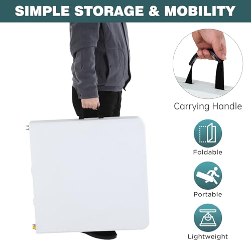• FDW 4 Foot Outdoor Dining Table, Foldable Portable Rectangular Plastic Folding Table with Built in Carrying Handle and Height Adjustable for Party and Wedding Use, White
