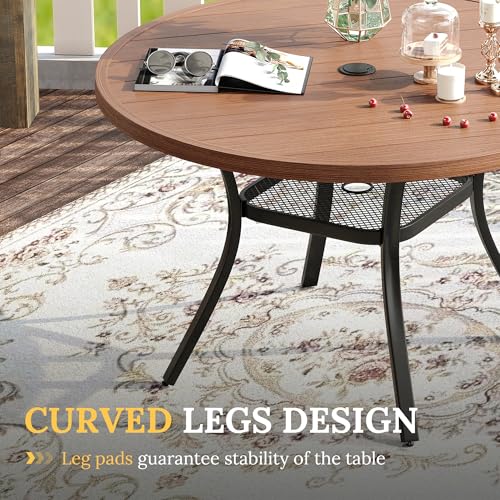 • VICLLAX Round Patio Table with Adjustable Umbrella Hole, All Weather Outdoor Round Dining Table for Lawn Garden, 41.2"x 28" Walnut Wood-Like Outdoor Coffee Table