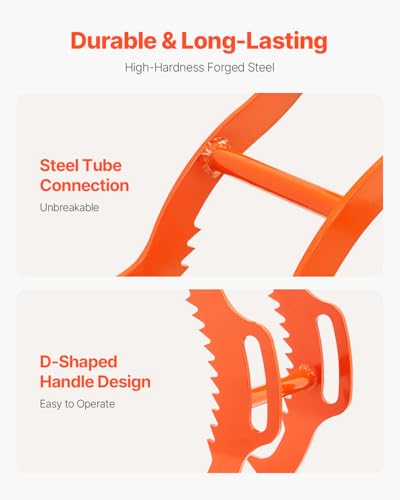 VEVOR Log Lifting Tongs 36in, 4 Serrated Claw Hook Log Tongs, Heavy Duty Steel Swivel Dragging Tongs, 3300LBS Log Grapple with Handles, Lumber Log Skidding Tongs for Tractors, Trucks, Forklifts, ATVs, Orange