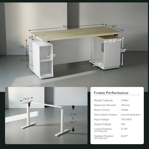 ModernMate Home Office Furniture Set, 71" Electric Standing Desk with 2 Wide File Cabinet, AC/USB, Mobile File Cabinet with Lockable Wheels, Furniture Set with Multiple Functions, Light Wood