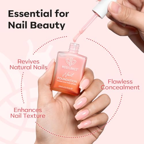 • modelones Nail Strengthener Peachy Pink Nail Repair for Damaged Nails Strengthening Polish 15ml Nail Growth and Strengthener Natural Concealer Foundation Nail Care Gifts for Women