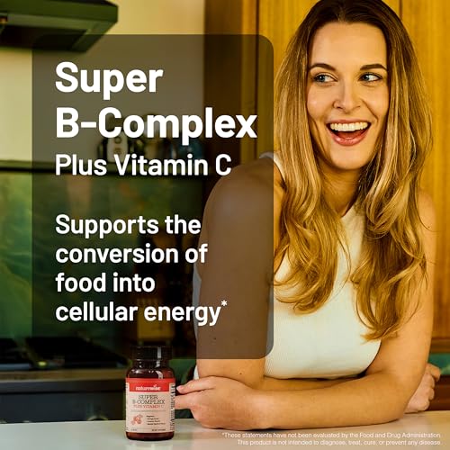 • NatureWise Super Vitamin B Complex for Women and Men - with Vitamin C, Folic Acid Biotin B1 B2 B3 B6 B12 - Support Cellular Energy & Mental Clarity - Vegan, Gluten & Dairy Free, Non-GMO - 60 Tablets