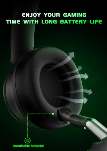 RYR Wireless Gaming Headset for Xbox Series X|S, Xbox One, PS5, PS4, Mac, Bluetooth 5.3, 3D Surround Sound, Rotatable Earmuffs, Gaming Headphones with Noise Canceling Microphones-Blackgreen, Standard