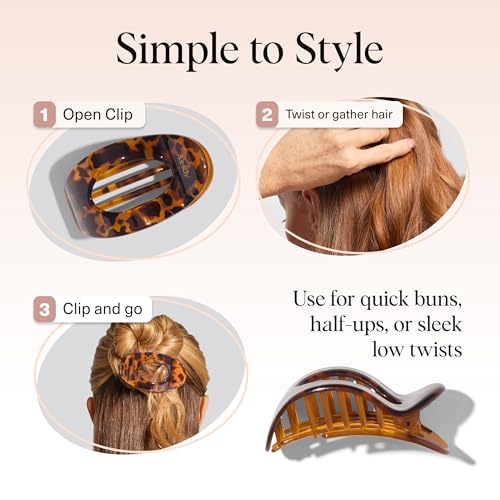 • Kitsch Small Flat Claw Clips for Women - Stylish Flat Hair Clips, Strong Hold for Thick & Fine Hair | Non-Slip for Secure, Comfortable All-Day Wear | Ideal Gifts for Women -Tortoise Design