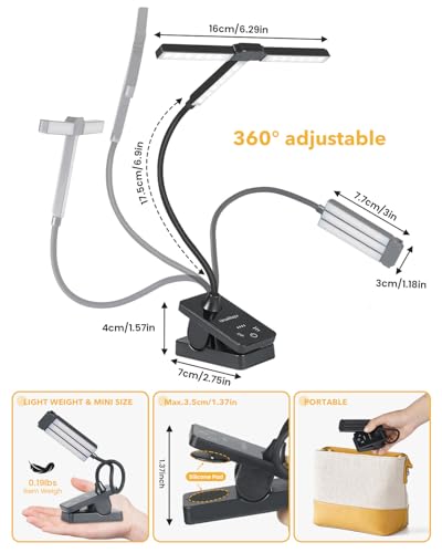 UrsaMajor 51 LED Music Stand Light, Folding Rechargeable Clip on Light, Portable Professional Piano Lamp, 4 Color& 3 Brightness Book Light, Perfect for Musician, Artist, Reading, Crafts, Black, 6.29 inches (H) x 3 inches (W) x 1.89 inches (D) Item Sku: