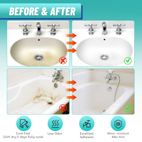 • YKF Tub and Tile Refinishing Kit, Quick-Dry Tile Paint for Wall, Floor & Countertop, Bathtub Paint for Bathroom, Kitchen, Sink & Shower, Water-Based & Low Odor, 16oz Covers 25-30 sq.ft, Semi-Gloss White