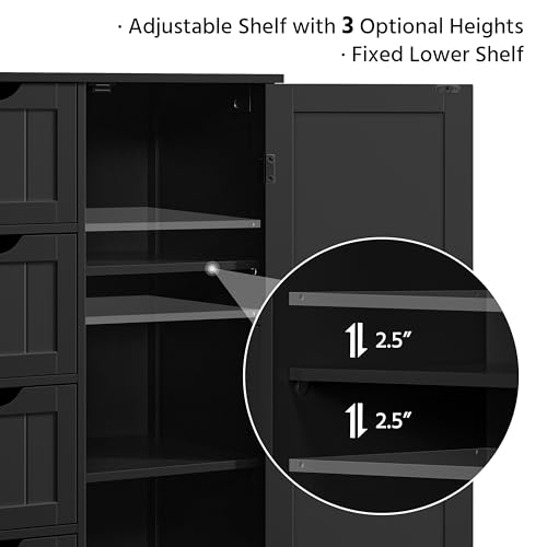 • Yaheetech Wooden Storage Cabinet, Bathroom Storage Organizer with 4 Drawers & 1 Cupboard, Freestanding Cabinet Table for Bathroom, Entrance Area, Kitchen, Black