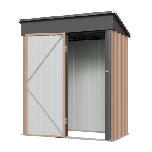 • Aoxun 5x3 FT Shed Outdoor Waterproof Storage Shed Metal Garden Shed with Lockable Doors & Slooping Roof for Backyard, Patio, Poolside (Brown)