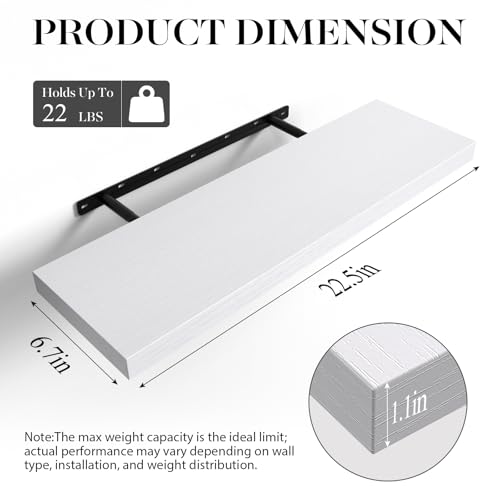 • BAYKA White Floating Shelves for Wall, 22.5 inches Wall Mounted Rustic Wood Shelves for Bathroom, Bedroom, Living Room, Floating Shelves for Books/Storage/Decor (Set of 3)