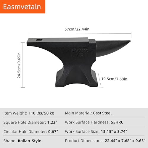 • Easmvetaln 110Lbs Cast Steel Anvil,Single Horn Anvil,High Hardness Round Horn Anvil Blacksmith with Large Countertop and Stable Base,Metalsmith Tool for Bending and Shaping,Black
