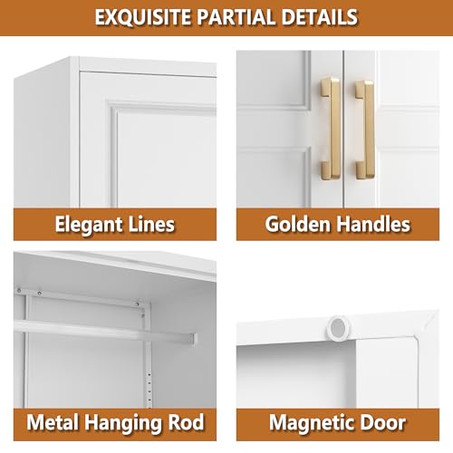 • Polup Metal Armoire Wardrobe Closet with Doors and Shelves, 71" Tall Freestanding Wardrobe Cabinet for Hanging Clothes, Large Closet with Hanging Rod for Bedroom, White, Assemble Required