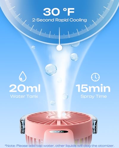 • Otlonpe Handheld Misting Fan Portable, 4000mAh Rechargeable Battery Powered, Small Personal Mister Fan with Water Spray Cooling, 4-Speed Wind, LED Display, Hand Held Mist Fans (Pink)