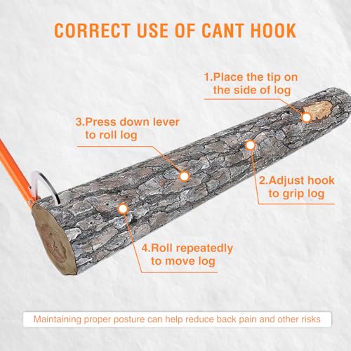 • Yesker 60" Cant Hook for Log Roller Logging Tools with Adjustable Steel Cant Hooks & Rubber Grip Heavy Duty Timberjack Log Lifter Mover for Rolling, Raising, Turning Logs up to 32" Diameter, Orange