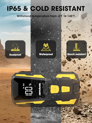 • DBPOWER 5000A Jump Starter, 74Wh Car Battery Jump Starter for Up to 10.0L Gas and 8.0L Diesel Engine, 12V Portable Jump Box Battery Pack with Display, LED Light, Jumper Cables, and Storage Case