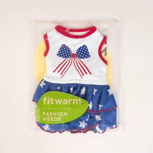 • Fitwarm Patriotic Bowknot Tiered Ruffle Dog Dress, 4th of July Clothes for Small Dogs Girl, Pet Outfit, Royal Blue, Red, White, XS