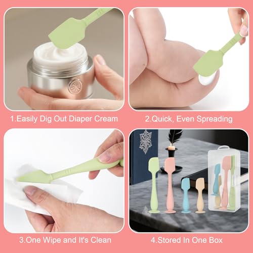 • 4-Pack Diaper Cream Spatula with Travel Case, Soft Baby Butt Spatula – Silicone Butt Paste Spatula, Convenient Diaper Spatula, Ideal Baby Shower Gift