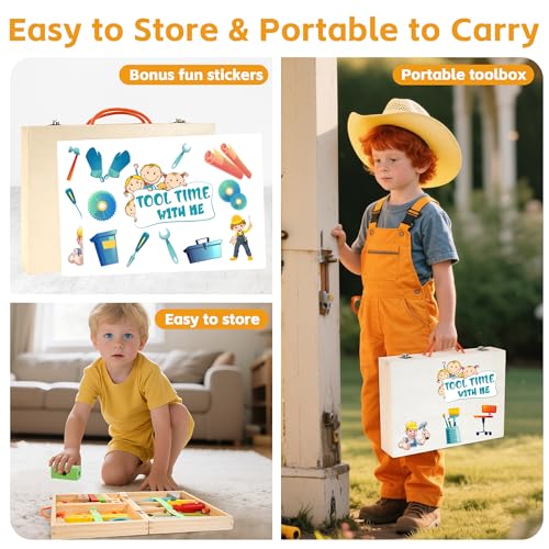 • KIDWILL Kids Tool Set with Electric Drill & DIY Stickers, Toddler Tool Set for Kids Ages 3-5 Year Old Boys Girls, Pretend Play STEM Montessori Educational Construction Toys