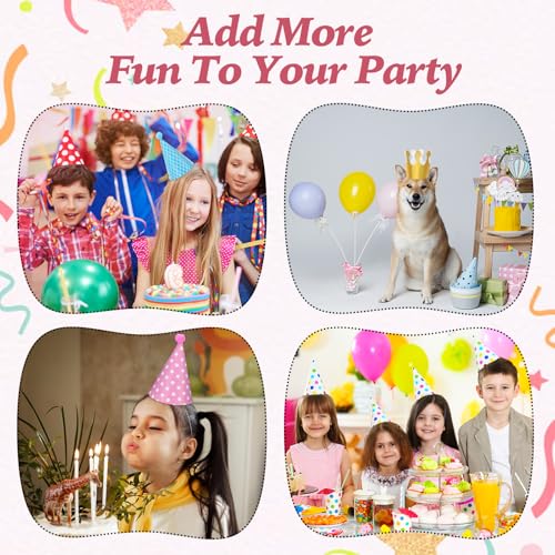 Ymapinc 11PCS Party Hats,Birthday Cone Party Hat Set Includes 2 Paper Crowns Colorful Mini Birthday Hats and 9 Adorable Hat with Pompoms for Kids Adults Pet, middle