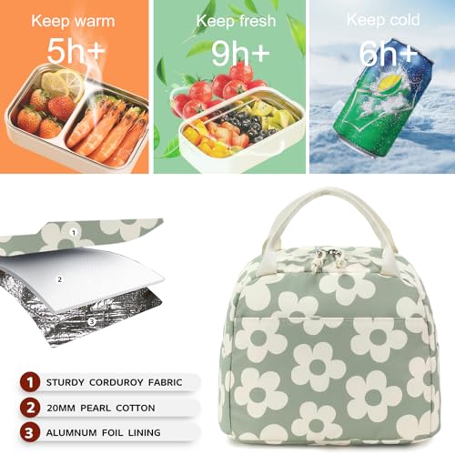 • Bluboon Lunch Bag for Women Men Cute Corduroy Lunch Tote Bags Reusable Insulated Lunch Box Large Capacity Reusable Insulated Cooler for Work Picnic or Travel