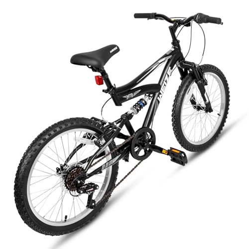 WEIZE Kids Mountain Bike, 20 inch Kids' Bicycles for 6-10 Years Old Boys Girls with Dual Full Suspension, 6 Speeds Drivetrain, High-Carbon Steel Frame, Ideal for Young Riders and Adventurers, Black