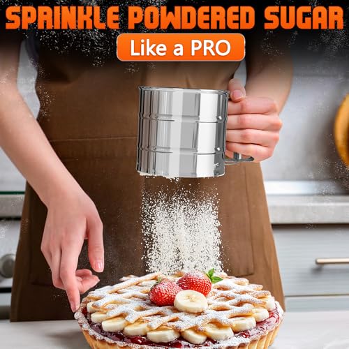 • Flour Sifter for Baking – 3 Cup Flour Sifter Stainless Steel with Dual-Blade, Ergonomic Handle, Reinforced Base, Rust-Resistant and Easy to Wash – For Powdered Sugar, Cocoa, and Daily Baking Tasks