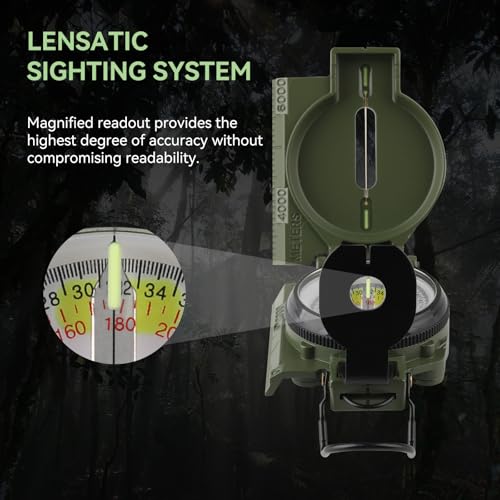 • Military Compass, with Sighting Lines, Impact Resistant & Waterproof Compass for Outdoor, Hiking, Hunting, Backpacking Camping,Tactical, and Survival