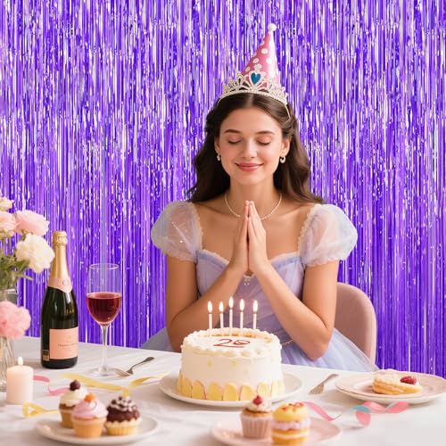 • YEURFONTASY Purple Tinsel Backdrop Foil Fringe Curtains - 2 Packs Door Streamers Backdrop for Birthday Door Decorations, Party Supplies for Bachelorette, Graduation, Christmas, Disco Decor