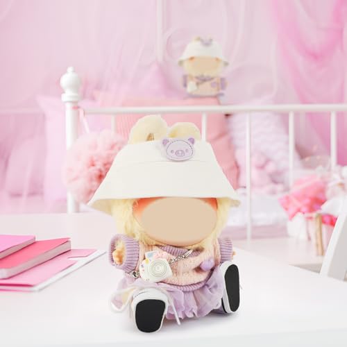 Dawnarriv 5 Set 15- 17cm Doll Clothes - Dolls Outfit Accessories for Girl , with White Bucket Hat + Small Camera + Canvas Shoes (No Doll) (Purple)