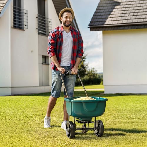• YITAMOTOR 60 lb Walk Behind Lawn and Garden Spreader for Seeds and Fertilizer with Easy to Use Flow Control