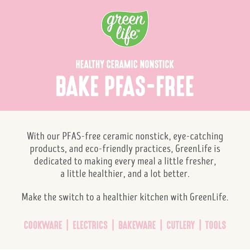 • GreenLife 6 Piece Nonstick Bakeware Set, Non-Toxic PFAS-Free Ceramic Oven Pans, Dishwasher & Oven Safe to 450°F, Easy Release Baking Sheet, Loaf Pan, Rectangle & Round Cake, Muffin Pan, Pink