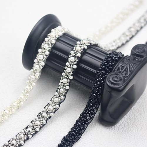 PEARLY JUN 2 Yards Pearl Beaded Trim Bead Lace Border White Edge Ribbon Strips for Sewing Wedding Dress Applique Bridal Straps Embellishments Decoration (White White, 2 Yards)
