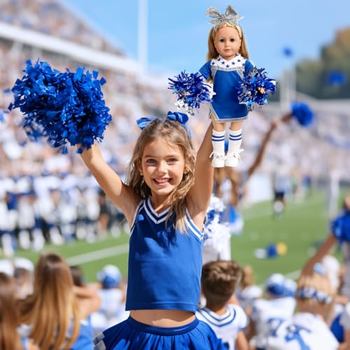 ARTST Cheer Uniform Doll Outfit-American 18 inch Doll Clothes & Accessories Set Including Clothing Pom Poms,Shoes,Socks and Hairbow,Sport Gifts for Girls Age 6+, Blue White Silver, Small