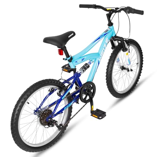WEIZE Kids Mountain Bike, 20 inch Kids' Bicycles for 6-10 Years Old Boys Girls with Dual Full Suspension, 6 Speeds Drivetrain, High-Carbon Steel Frame, Blue