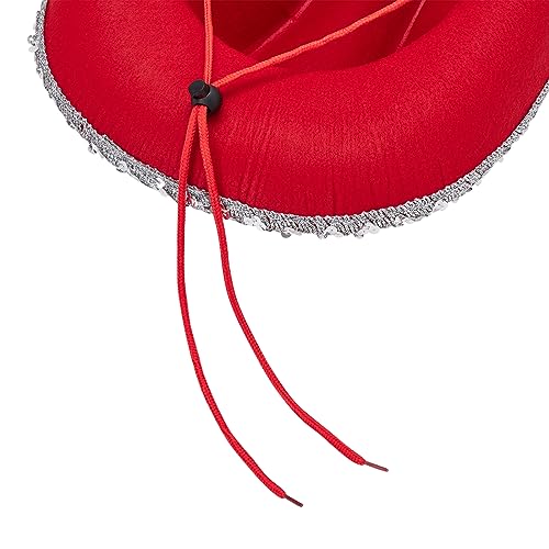 • Baloco Sequins Cowgirl Hats for Women Western Wide Brim Glitter Cowboy Hat and Tassel Bandana 2Pcs Costume Set (Red Sequins, ONE SIZE)