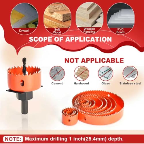 • ANGELSWORD Hole Saw Set 22PCS Double-Ground Teeth Hole Saw Kit, Hole Saw Drill Bit Kit, 3/4"-6" (19-152mm) 13PCS Saw Blades, for Drywall, Soft Wood, Plywood, Plastic, PVC