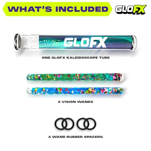 GloFX Aurora Borealis Liquid X Kaleidoscope Tube Toy – Dual Glitter Wands (Blue & Teal) – Includes Tube, Wands & Spacers – Sensory Toy for Teens & Adults 15+, Blue & Teal/Green Wands, 7.5 Inches
