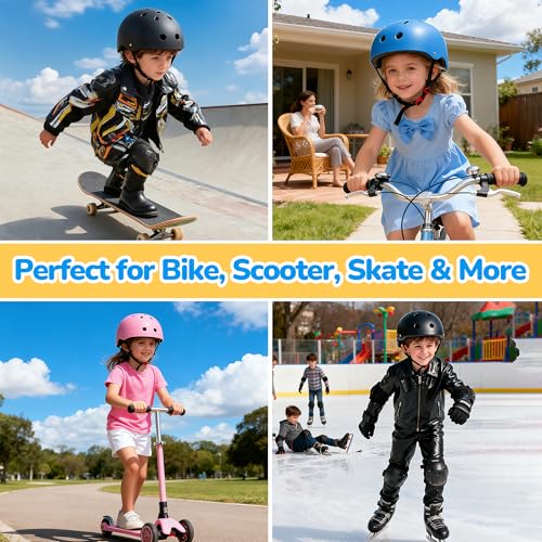 KOMOMOPLUS Kids Bike Helmet, Toddler Helmet for Youth Boys Girls Ages 3-14 Year Old, Adjustable Fit & Lightweight, Multi-Sport Safety for Skateboard Skating Bicycle Scooter Cycling (Black, S: 18.9-22 inch)
