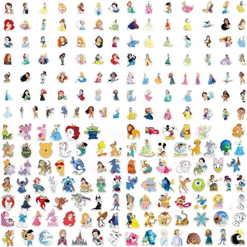 • 200pcs Kids Disney Princess Cute Cartoon Character Stickers - Movie Decorative Waterproof Stickers for Kids, Teens & Adults