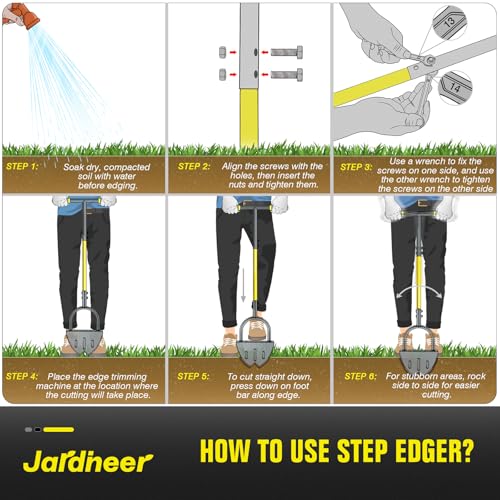 Jardineer Edger Lawn Tool Long Handle, Upgraded Manual Grass Edger with Double V-Shaped Serrated Edge Blade and Wide Footplate, Edgers for Landscaping Yard Maintenance, black and yellow
