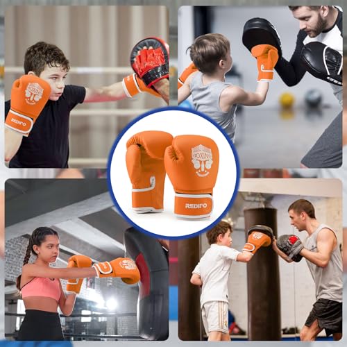 Redipo Kids Boxing Gloves, Sponge Foam Training Sparring Gloves Thai Kick Boxing for Kid and Youth, Suitable for Boys and Girls Age 3 to 9 Years, Orange, 4oz
