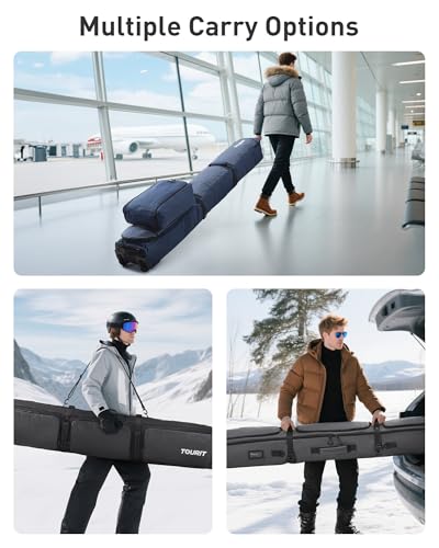 • TOURIT Rolling Ski Bag and Ski Boot Bag Combo, Snowboard Bag with Wheels for Air Travel Ski Bag Holds 2 Pairs of Skis (190cm), Grey