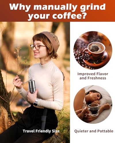 • Stainless Steel Burr Manual Coffee Grinder For Drip,French Press,5 Adjustable Settings,Hand Mill with Built-In Burr,For Home Use and Camping (Stainless Steel burr-Sliver)
